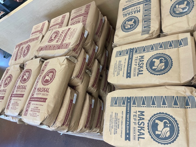 Thank you, Robin, for sharing this, and Cate and Joni for your additional information. Robin, Are you aware of people outside of the Ethiopian and Eritrean community in your area making use of teff flour in any way? Seems like it would have great potential in sweet baked goods. I suppose one could also ferment a teff flour mix, as is done for injera, and incorporate it into a dry sourdough bread? Many possibilities. Speaking of which, Joni has some years' experience, of course. Joni, you once mentioned the different characteristics of ivory vs brown teff for your mixes. Do you have any further observations about that? An important message of the stack of sacks of teff flour in the photo is that all of this is produced in the US. I understand that there are two main companies processing teff - the Teff Company,/1 producing the Maskal teff shown in Robin's photo, and about which Joni commented, and Selam Foods,/2 marketing Selam teff. My understanding is that most of the grain teff is produced in parts of Idaho and Nevada. Cate, you mentioned a farm in Fallon, Nevada. That is in Churchill County, which I read not long ago has about a dozen commercial growers of grain teff. There are also efforts in other parts of the US, such as Oklahoma and one farm we know of in Michigan (Tenera Farms, the source for teff in the Teffola granola products/3). Of course some teff is imported from Ethiopia (this was not always the case, which provided the initial opening for US based growers). When I was based in northern Virginia, I found a small and busy Ethiopian foods shop with a selection of teff flour with different names, perhaps corresponding to provenances. They were selling the flour repackaged in clear plastic bags, evidently originally in larger sacks. There are companies that sell packaged teff from Ethiopia, such as one in Ontario that I came across in a search: Berhan Teff./4 Best to all, Don DO, EL, MI, US NAMA Notes: 1. https://teffco.com/ 2. https://selamfoods.com/ 3. https://eatteffola.com/ 4. https://berhanteff.com/ On Wed, Jul 24, 2024 at 2:45 PM Joni Kindwall-Moore < joni@snacktivistfoods.com> wrote: