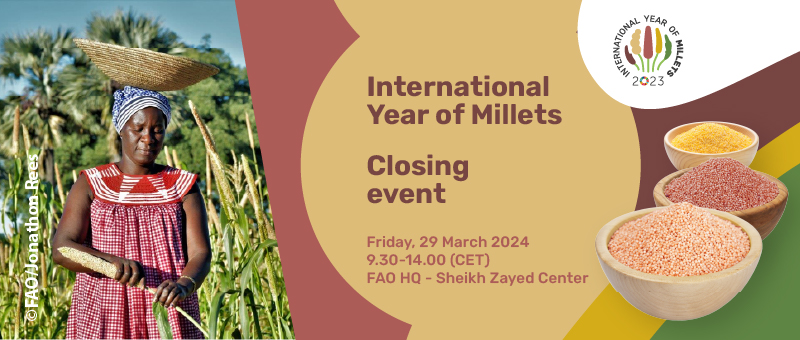 Join us for the International Year of Millets Closing Event - Friday 29 March 2024 - Hybrid Event (FAO and online) - REGISTER AND SHARE IT!