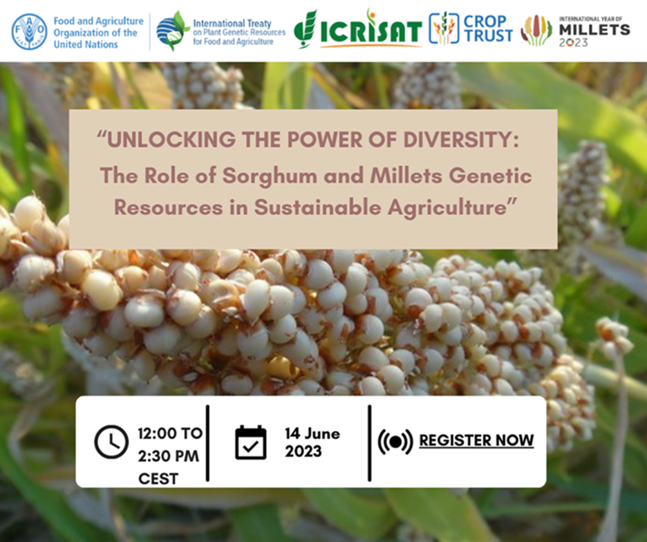 On the occasion of the International Year of Millets 2023 <https://www.fao.org/millets-2023/en>, the Secretariat of FAO’s International Treaty on Plant Genetic Resources for Food and Agriculture is collaborating with the Crop Trust and ICRISAT to organize an international panel of experts to highlight the importance of the genetic diversity of sorghum and millets for food security and nutrition. The Panel will reflect on recent advances and current challenges in the conservation, sharing, and use of the diversity of these important but often unjustly overlooked crops.
